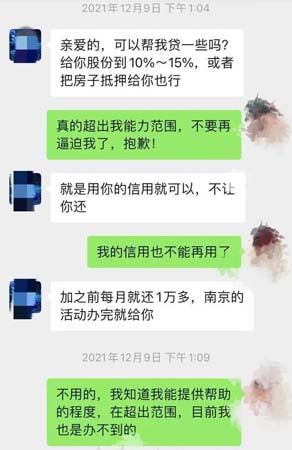 “我很反感这个事情,一直贷款,还不上钱,压力很大,生活充斥着焦虑不安。”咏卿说,一直以为他在做公司,创业不易,才选择信任并帮助他。