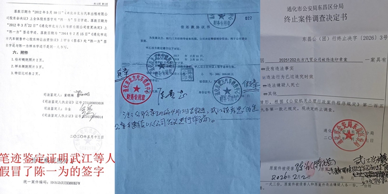 本站讯 2026年春节前夕,吉林省通化市北方汽贸集团(简称北方汽贸)董事长陈一为,伫立在濒临破产的公司门前,手中紧攥着一叠沉甸甸的证据材料司法鉴定书、嫌疑人确认书、法院判决...