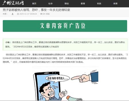 以上反映内容全部属实,如有虚假,反映人愿承担一切法律责任,与媒体及发布平台无关。期盼上级领导在查明事实的基础上,依法依规公正处理。一是请求对被反映人的辱骂、恐吓行为立案调查,依据《治安管理处罚法》第四十二条作出行政处罚,并将处理结果书面告知反映人;二是请求有权处理单位在法定时限内(15日内)与反映人对接,30日内出具信访事项处理意见书,明确问题解决方案;三是请求对反映人因本次事件产生的合理权益损害(如精神困扰、时间成本等)予以关注,确保后续无任何针对反映人的打击报复行为,并依法提供必要的权益保障措施,维护反映人正当权益和社会公平正义。 来源:广州资讯网
