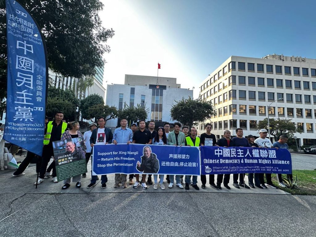 民主人士洛杉矶中领馆前集会 吁释放邢望 10月25日,第761次茉莉花行动,60余人到场声援邢望力、张盼成等良心犯(主办方提供) 【大纪元2025年10月27日讯】(洛杉矶讯)第761次“茉莉花行动”于2025年10月25日下午4时在中共驻洛...