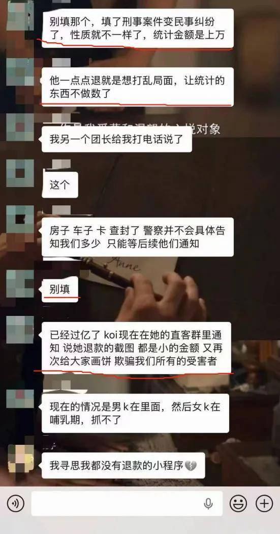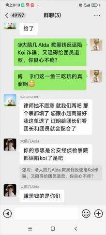 (团长微信群中有人鼓动不要配合接受KOI退款,身份不详)