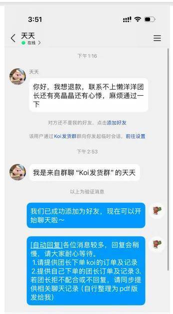 ……而近期,所有的小团都已不再发货,部分团长回复“koi联系不上了”,消费者们开始维权。(见下图上观新闻图一图二)