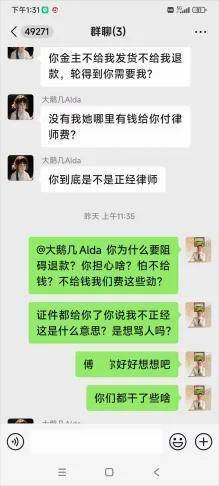 春节前的第一期退款完成,有些团长拒绝提供订单号,所以KO i只能退回收到的实际款额,团员的实际对团长的付款KOI无法全额退回。没有想到通过极兔快递发货却遭到了团长拒收,而且另行改派到了办案机关所在地,目前尚无办案机关对此进行说明,也不出具扣押清单。在小红书上,有一个团员发出一个某微信群的截图,令人感到百思不得其解。